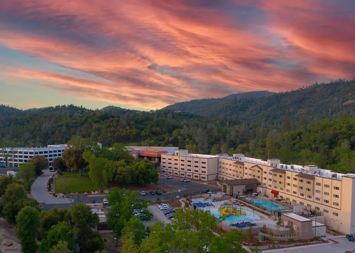 The Hotel At Black Oak Casino Resort is a 4-star family-friendly and pet-friendly hotel featuring a 4645.1 m² smoke-free gaming floor and multiple dining options. Guests enjoy amenities such as a heated pool, spa, fitness center, and a full-service RV park, making it a versatile accommodation in Tuolumne.